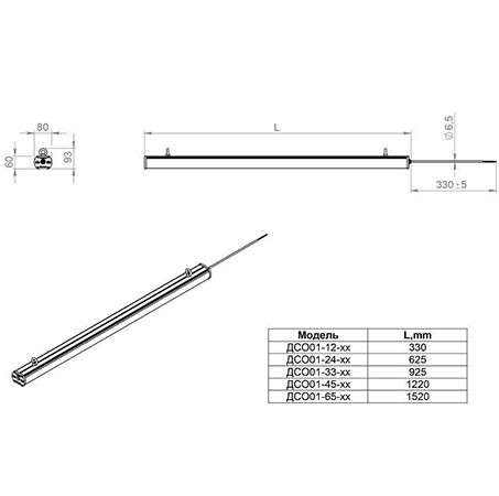 | Габаритные размеры светильника, мм | 80х900х60 |