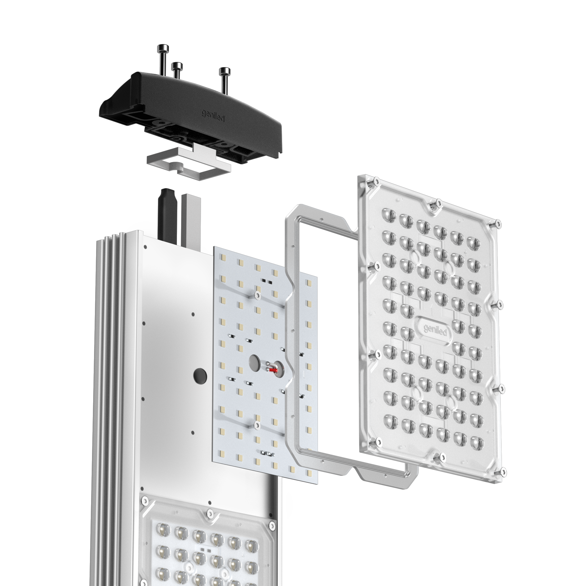 Светильник Geniled Optimus создан для максимально функциональных и продвинутых проектов. Корпус светильника Optimus модульный. Соединяясь между собой, как конструктор, модули 20Вт создают надежную систему необходимой мощности. Прочность конструкции обеспечивают специальные крепления и соединительная плата. Светильник Optimus универсальный, подходит для освещения: улиц, дорог, мостов, тоннелей; ж/д путей, переездов, депо; промышленных предприятий и строительных площадок; входных групп и придомовых территорий; аэропортов, складов, спортивных объектов; торговых центров и атриумов.