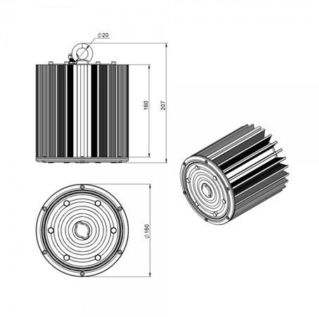 | Габаритные размеры светильника, мм | Ø160 x 207 |